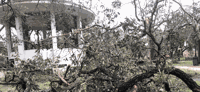 One of the hardest-hit areas in downtown Mobile was tree-lined Bienville Square, which saw several oak trees and one magnolia fall as a result of Hurricane Sally.